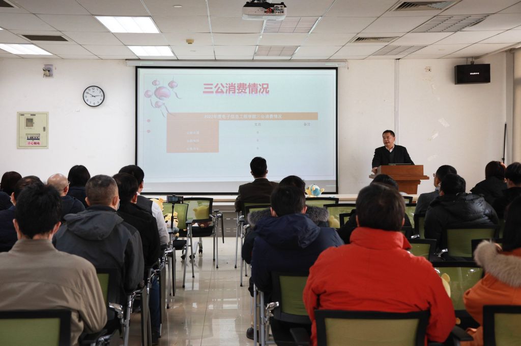 会上,曹先彬院长对本年度学院获得奖项及荣誉作出总结,并对学院2021年决算及2022年预算情况进行公示说明。他表示,本年度我院广大教师始终扎根在教学科研一线,为学院做出突出贡献,经过学院全体教师的共同努力,学院在党建、师德师风、课程建设、科研等各个领域都取得了可喜的成绩。
