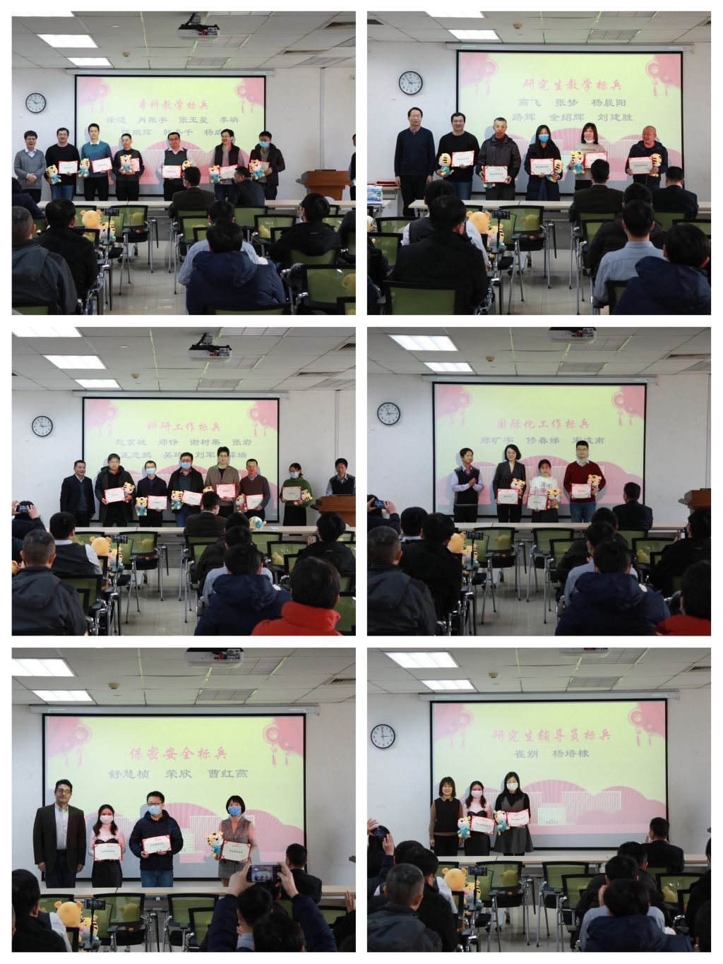 随后,学院领导班子成员共同为“本科教学标兵”、“研究生教学标兵”、“科研标兵”、“国际化标兵”、“保密安全标兵”、“行政服务标兵”、“本科生辅导员标兵”、“研究生辅导员标兵”获奖教师颁奖。