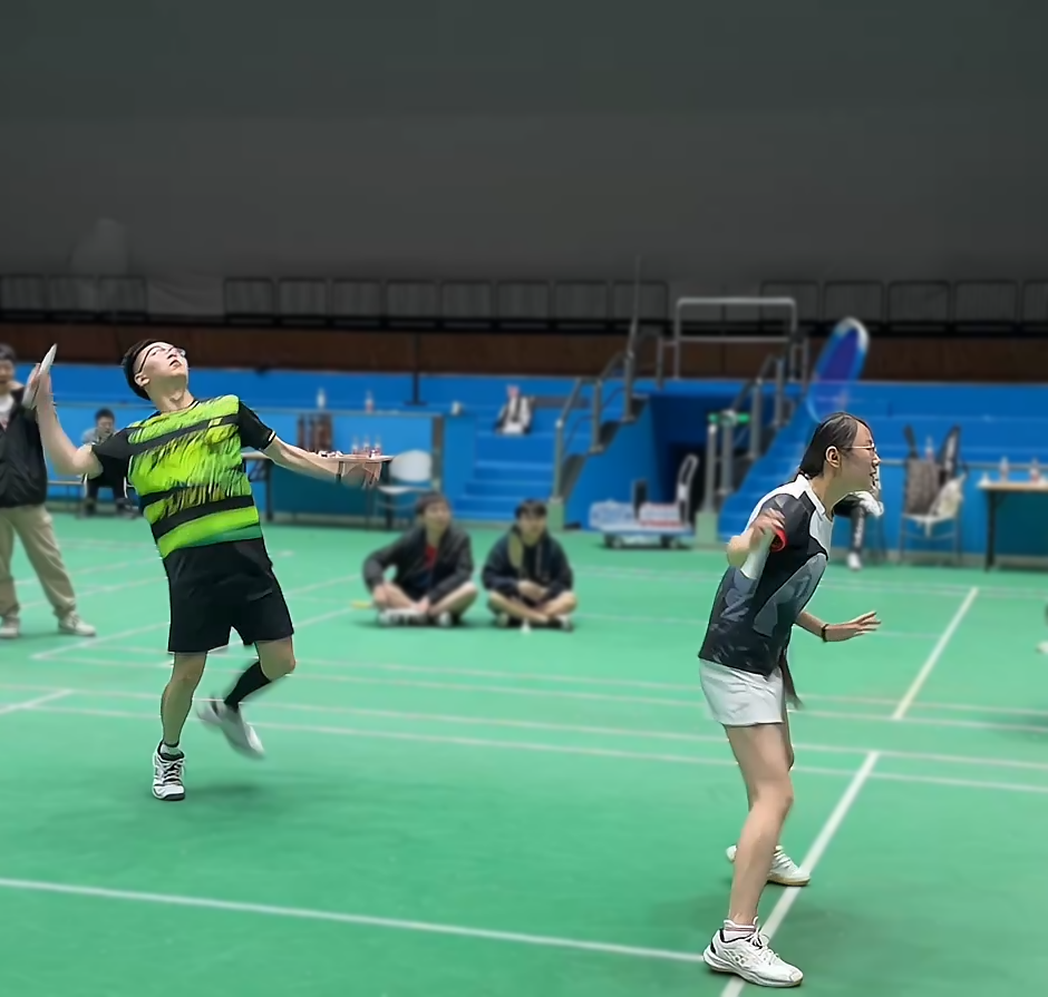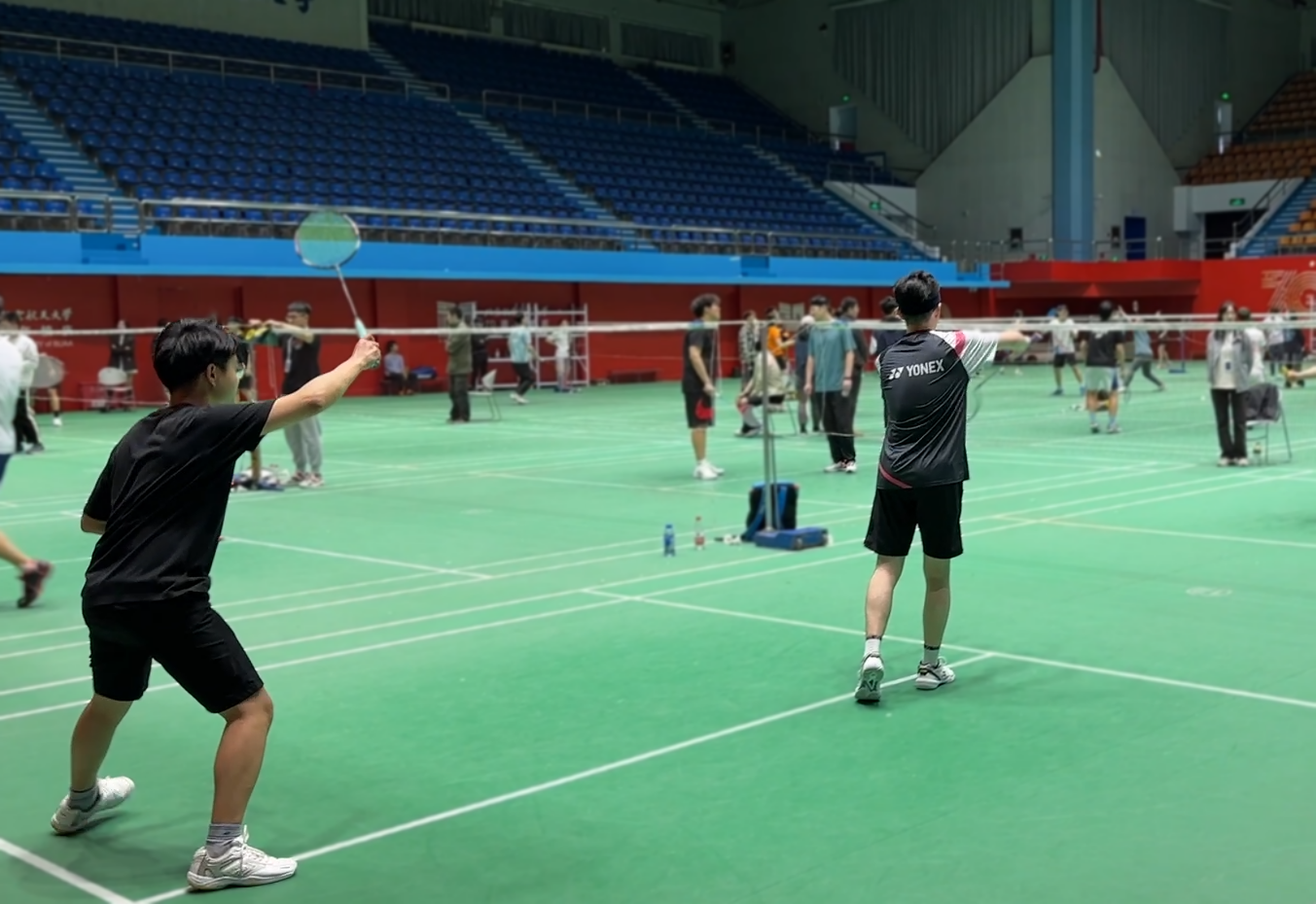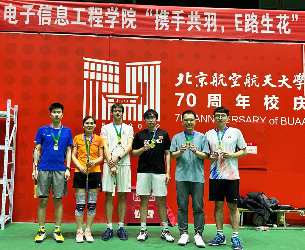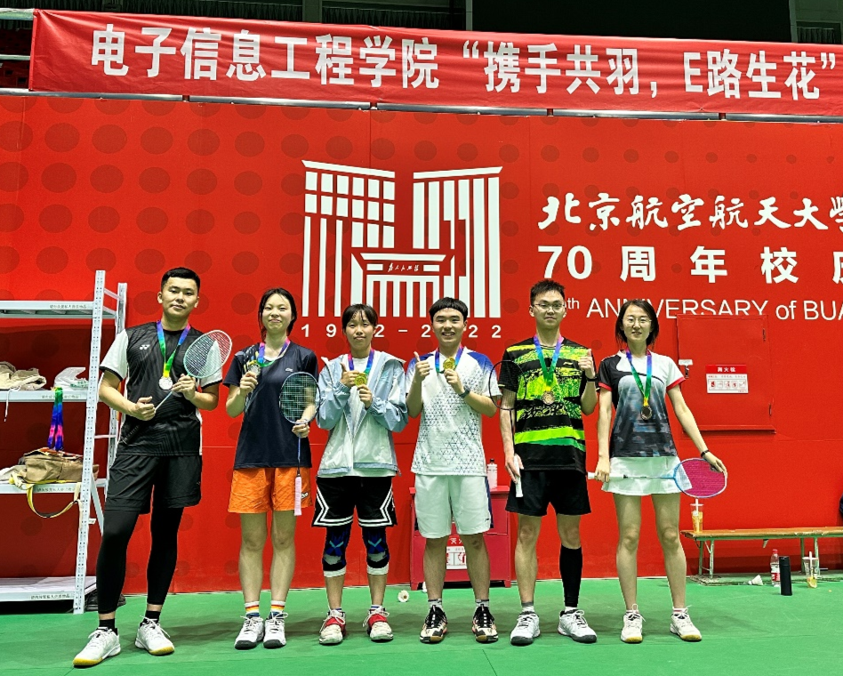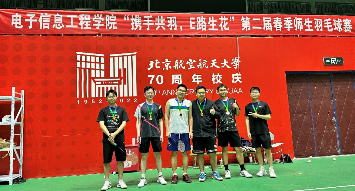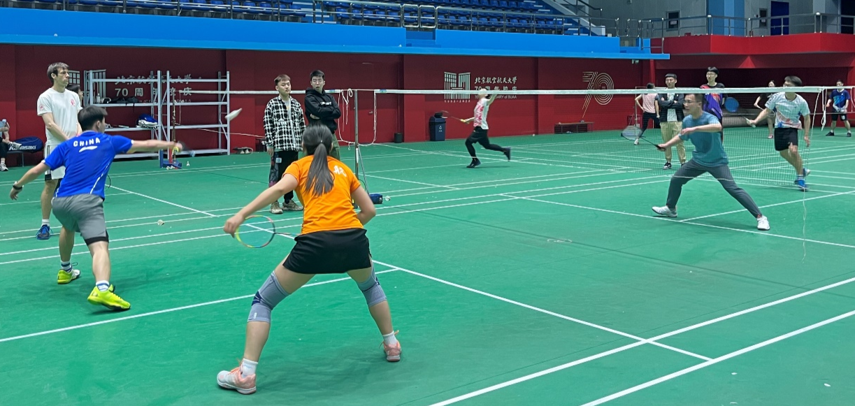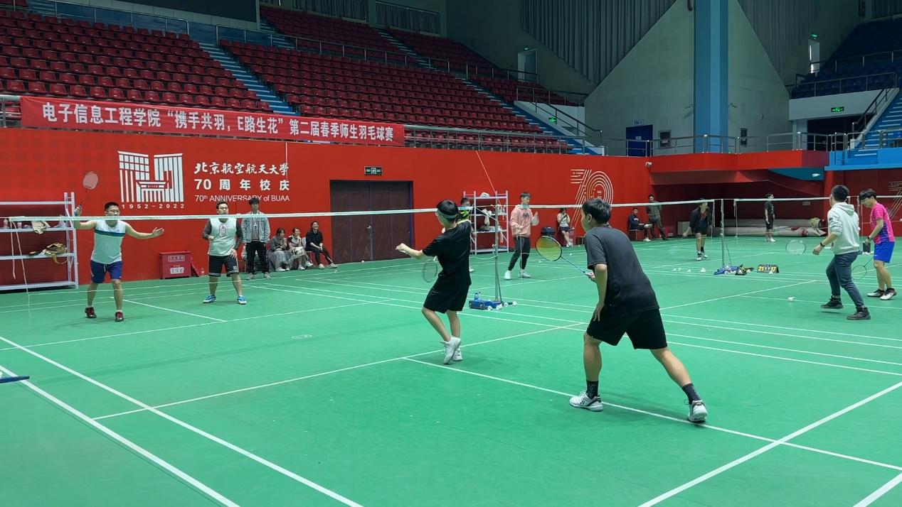 正值导学关系建设月,本次比赛由北航电子信息工程学院研究生会联合工会举办,文体部承办,共有师生混打、男女混双、男子双打三个项目。赛场上,选手们挥洒汗水,拼尽全力,尽显扎实功底,在每一个回合的博弈中高度专注,热情四溢。精彩的杀球、精准的吊球、灵动的脚步、肆意的呐喊,选手们斗志昂扬,为场边的观众献上了一场场精彩绝伦的比赛。