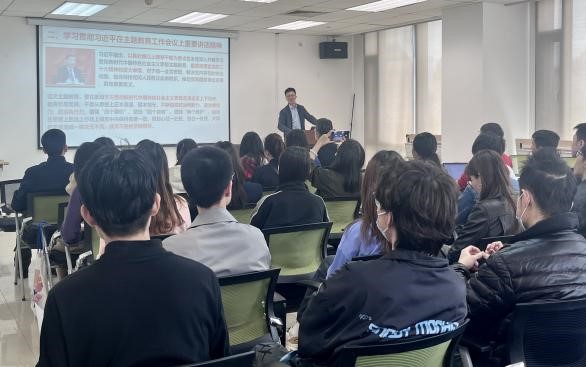 会上,学院党委副书记姜宇带领全体师生党支部书记认真学习了习近平总书记在学习贯彻习近平新时代中国特色社会主义思想主题教育工作会议上的重要讲话精神。