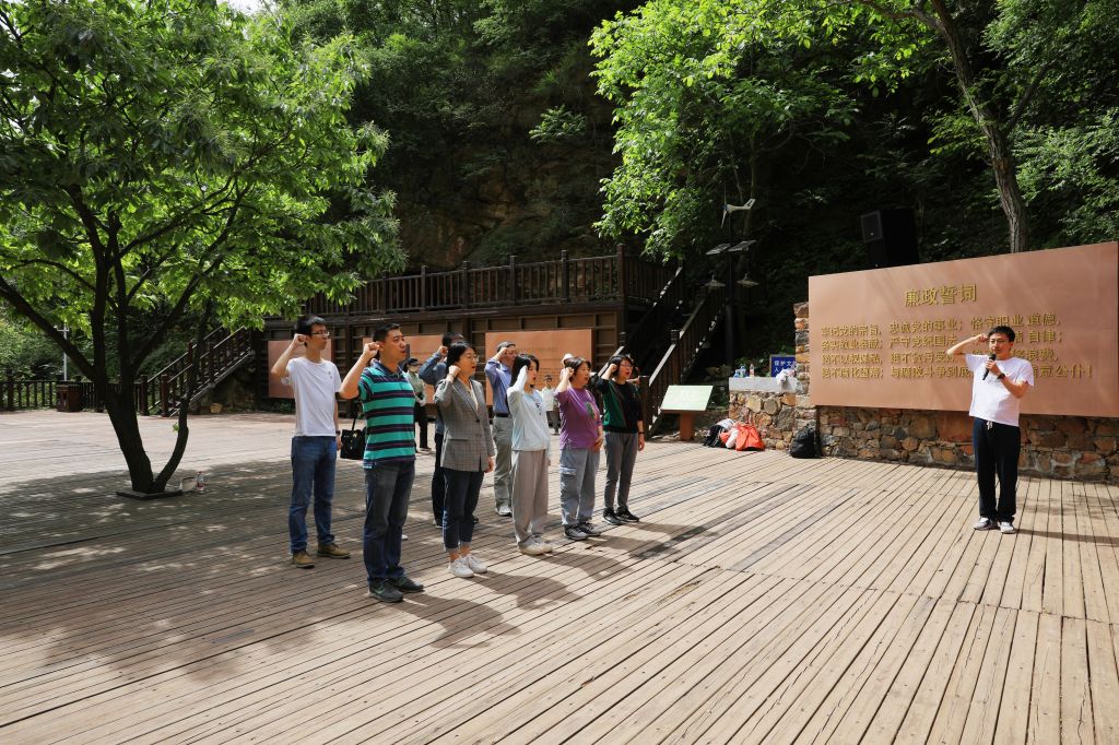 本次活动还在教育基地的红崖洞,平谷第一党支部成立的地方,开展了读书分享和交流,党员同志们依次分享了《习近平关于调查研究论述摘编》和《习近平新时代中国特色社会主义思想学习纲要》中的重要内容。其中王祖林老师分享了“正确认识和把握中长期经济社会发展重大问题“的部分内容,201教研室党支部书记孙兵分享了“依靠顽强斗争打开事业发展新天地,增强新时代新征程历史主动”的相关内容,机关教师党支部书记付路分享了“实行最严格的生态环境保护制度,共建地球生命共同体”相关内容。