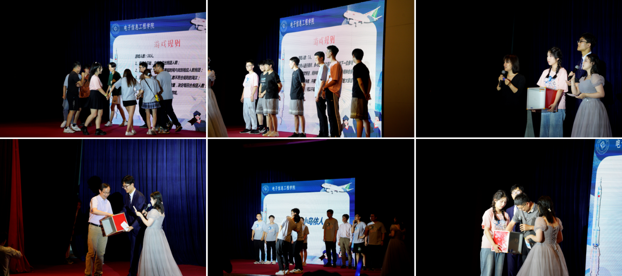 穿插在节目中间的现场游戏《三人抱成团》、《手机炸弹》、《你演我猜》以及游戏后的超级大抽奖环节,更是让同学们的欢呼雀跃和哄堂笑语环绕在整个学术交流厅中。现场由参加晚会的学院老师们抽取三等奖5项、二等奖3项、一等奖2项。参与游戏的同学们都获得了筹备组精心挑选的小礼品。