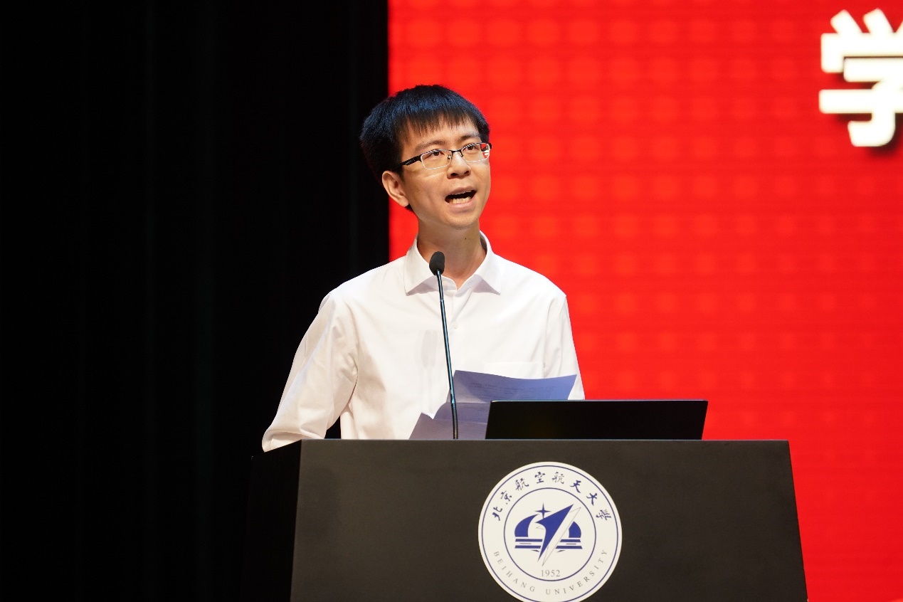 2010级本科校友,在校教师代表李胜曦分享了自己在北航本科和硕士的学习经历。作为北航沙河校区的第一批本科生,在学院的培养下逐渐拨开云雾,见证信息智能技术的飞速发展。他感谢学校和学院为每一名同学提供了展示的舞台,为每一位教师找到了自己的价值,他希望能像当年的老师一样担起立德树人重任,为党育人,为国育才,争做新时代大先生。