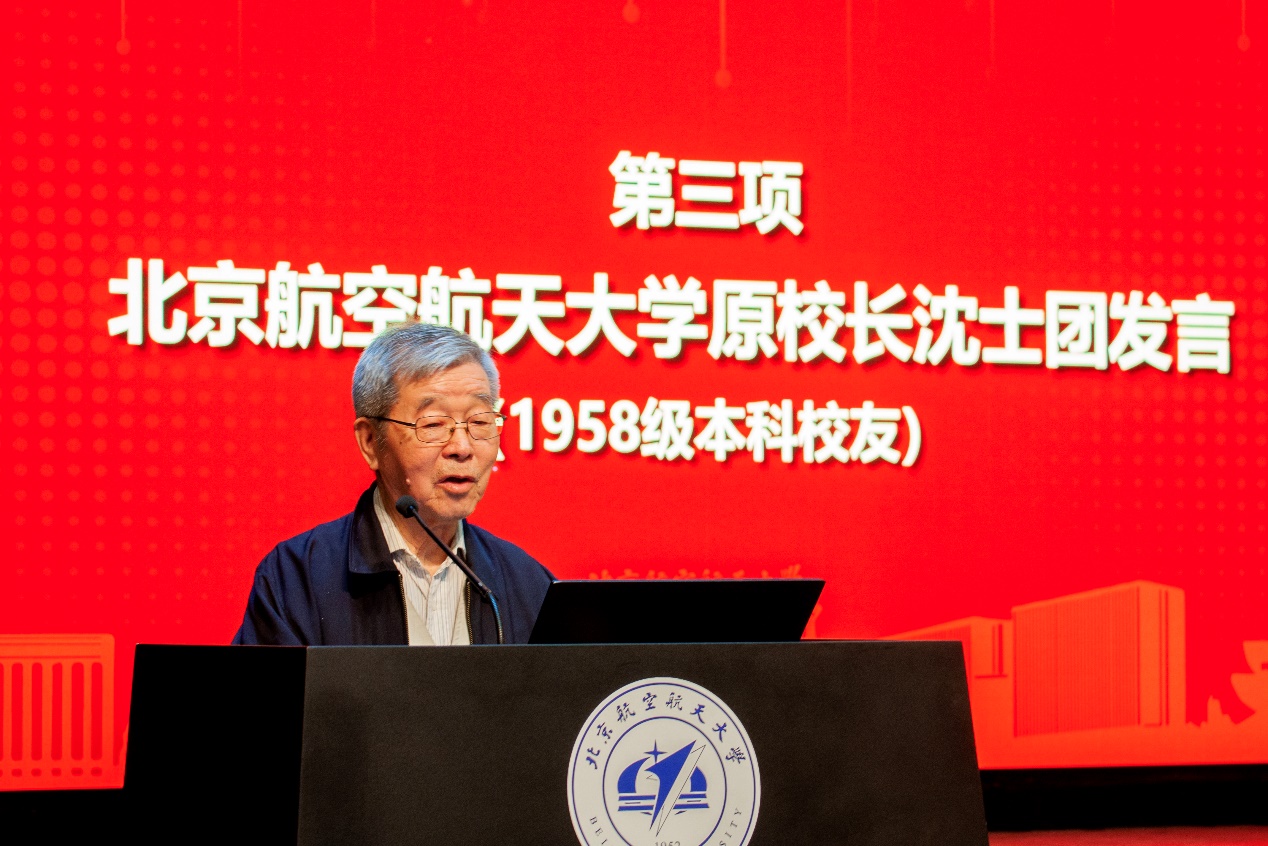 1958级本科校友、北京航空航天大学原校长沈士团回顾了自己在“老二系”学习、成长的经历,指出学院发展到今天的规模和水平,是一代又一代二系师生共同奋斗的成果,希望学院继续重视人才培养。他强调,适应21世纪时代发展需要的人才不但要有宽厚扎实的专业技术知识,还要有高的艺术、道德、身体、心理综合素质,正是因为学院始终重视人才培养,老师关怀爱护学生,才从当年的无线电系发展到如今的规模和水平,祝福学院继续蓬勃发展,培养对国家、对社会有用的人才,提高整体人才素质。