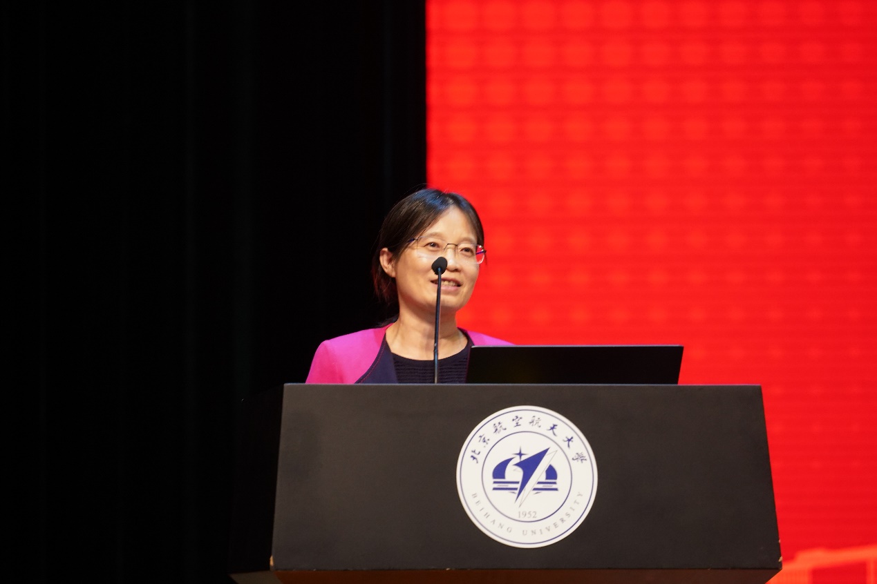 1991级本科校友、“北斗女神”王淑芳表示,北航和电子学院给了她知识和灵魂。她分享自己作为北斗第一批建设筹备者的研发经历,讲到在临时任务中与同班同学在西安重聚的故事,感慨电子人遍布祖国各个重要岗位,服务于国家、国防重大战略需求和社会生活各个领域,这一切都离不开学院的培养与支持。她表示自己今后将在新的技术领域继续探索,感谢学院各位恩师的培养,也期待未来与师弟师妹们携手同行。