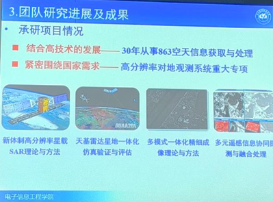 其次,陈老师介绍了他的科研经历与其科研团队的发展历程。“一个方向,40年研究;一个团队,五个阶段。”经过了奠基、孕育、成长、发展与壮大,陈老师所在的科研团队已逐渐成为服务国家、创新理论的典范。如今,团队已在SAR图像海洋目标分类识别与检测算法的研究上取得一定进展,在多场景实测、光SAR融合检测、铁塔目标检测等问题上取得了显著成果。