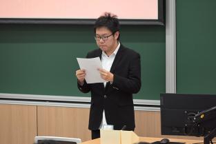 学院党委副书记姜宇老师总结讲话。姜宇老师首先对本次学代会的成功召开表示了祝贺,对各位与会学生代表及工作人员表示了感谢。针对学生会的各项工作,他予以肯定和褒奖,最后也向学生会和全体学生代表提出了三条建议: