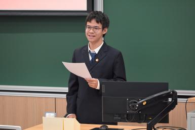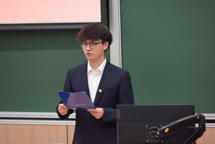 校学生会代表钟宜典发言,他代表校学生会对本次电子信息工程学院学生代表大会的召开表示热烈祝贺,对过去一年电子信息工程学生会所做的各项工作进行了表扬和鼓励,勉励大家携手并进,同心协力,汇聚青春力量,绽放青春光彩。