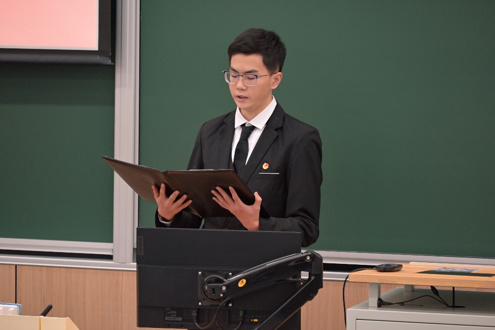 学院分团委书记郝旭春老师以视频的形式代表学院团委向大会的胜利召开表示热烈的祝贺。郝旭春老师对学生会过往一年的工作表示充分的肯定,希望学生会继续坚持以习近平新时代中国特色社会主义思想为指导,以“全心全意为同学们服务”为宗旨,让同学们尽情享受正常的、开放的、灵动的校园生活;希望各位同学在博学强识中夯实基础,在矢志创新中提升能力,在实践实干中增长本领,努力成为堪当大任、能做大事的优秀人才。