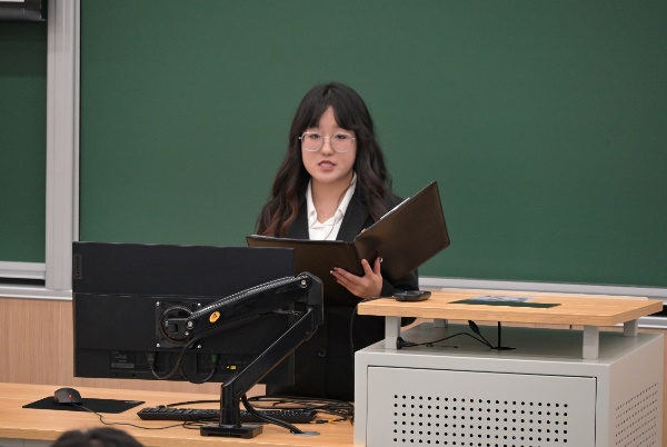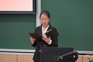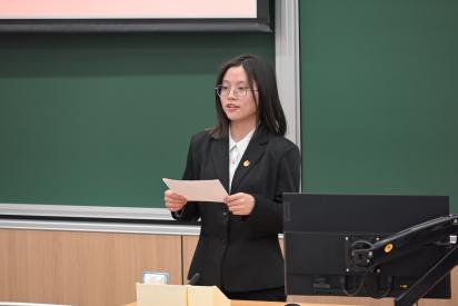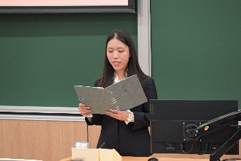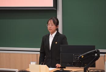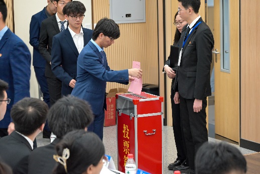 三位主席团候选人分别上台进行演讲,介绍了个人经历,表明了自己服务学院和同学的决心,最后由与会代表投票选举。