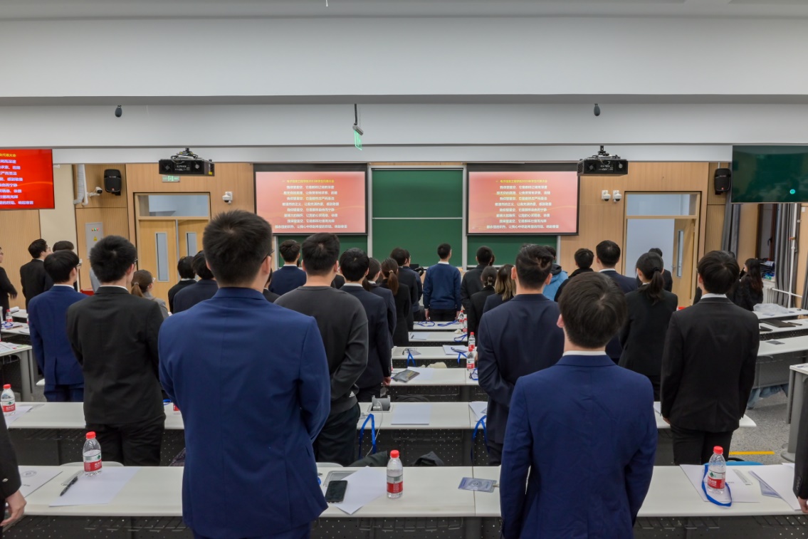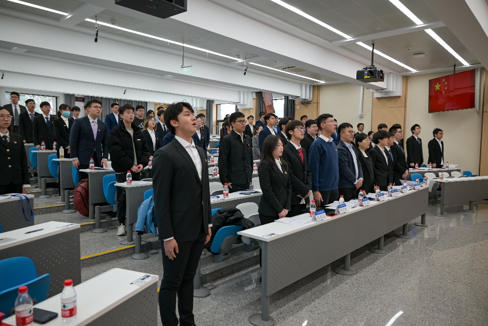 与会人员全体起立,合唱国歌,拉开了北航电子信息工程学院2023年学生代表大会的序幕。