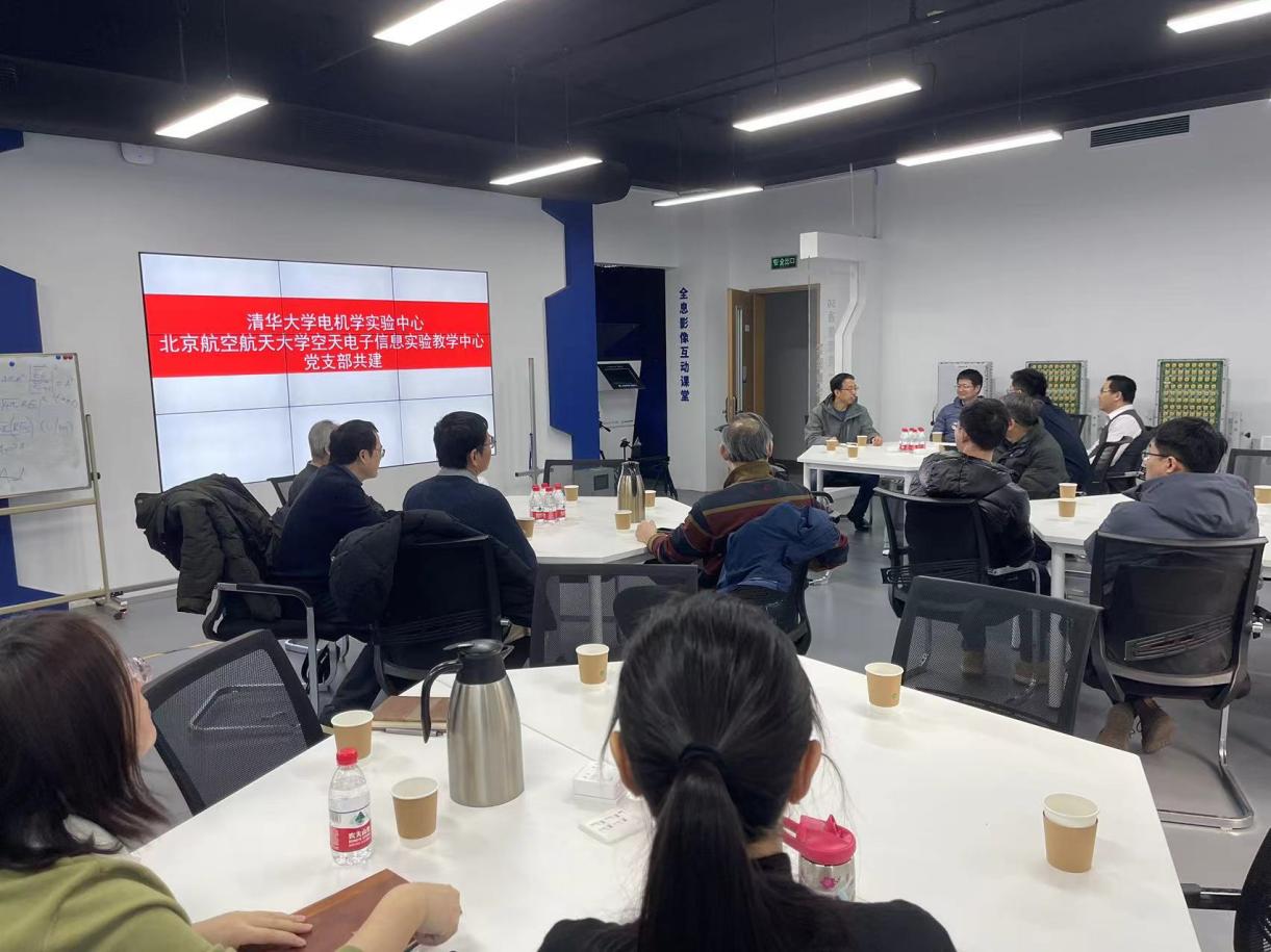 清华大学电机系实验教学中心与机关党支部毕大强书记介绍了电机系实验教学中心的整体实验教学情况,他表示学校在着力加强课程建设、实验管理和学生竞赛活动,希望系统了解北航空天电子信息实验教学中心在实验课程体系建设,实验室和实验设备管理,以及学生竞赛培训的系统设计、组织安排、条件保障等方面的经验,同时希望把双方的合作交流做实做深,通过相互交流,深入合作,共同提高实验教学、实验管理和竞赛培训水平。