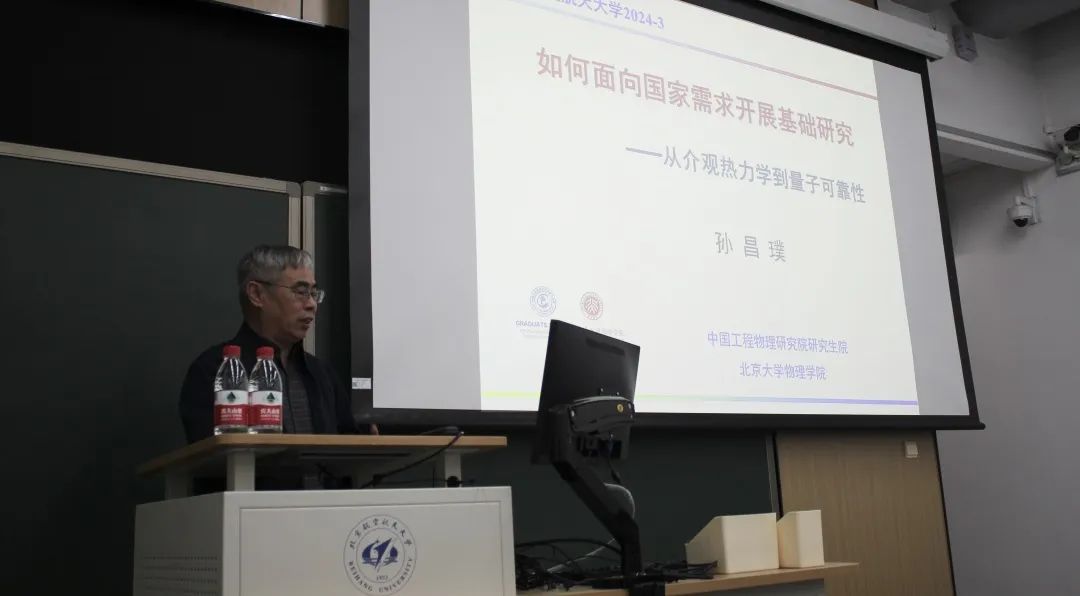 3月6日晚上7点,《电磁兼容技术前沿》系列讲座成功开启了第二讲。本次讲座邀请到了中国科学院院士,中国工程物理研究院研究生院创院院长,著名理论物理学家孙昌璞先生为我们开展讲座。孙院士基于在理论物理学界深耕多年的专业素养,为同学们做了题为《如何面对国家需求开展基础研究——从介观热力学到量子可靠性》的报告。本报告基于孙院士自己在中国工程物理研究院的科研实践经验,探讨如何面向国家战略需求来进行创新性与具有前瞻性的科学基础研究,同时又让同学们接触了科学研究中的灰色地带并着重强调了科学道德在科研领域中的重要作用。本次参加讲座的包括了来自2022级电磁场与无线技术方向的同学们、通过博雅选课的同学们以及研究生与老师们,座无虚席。