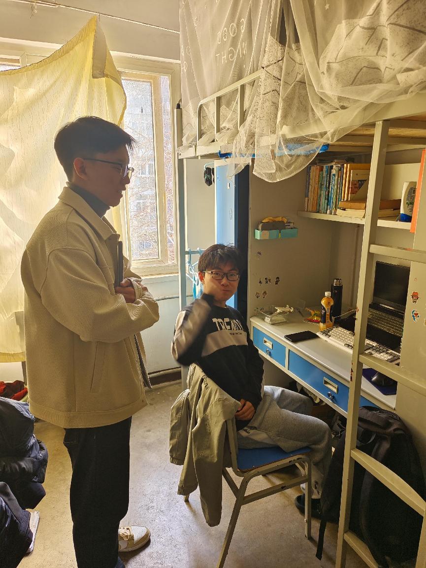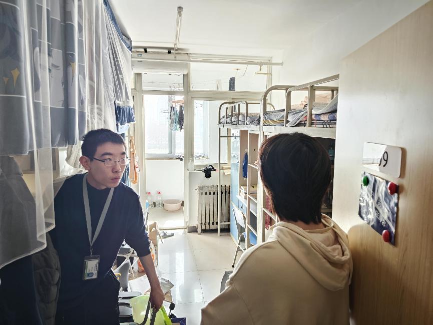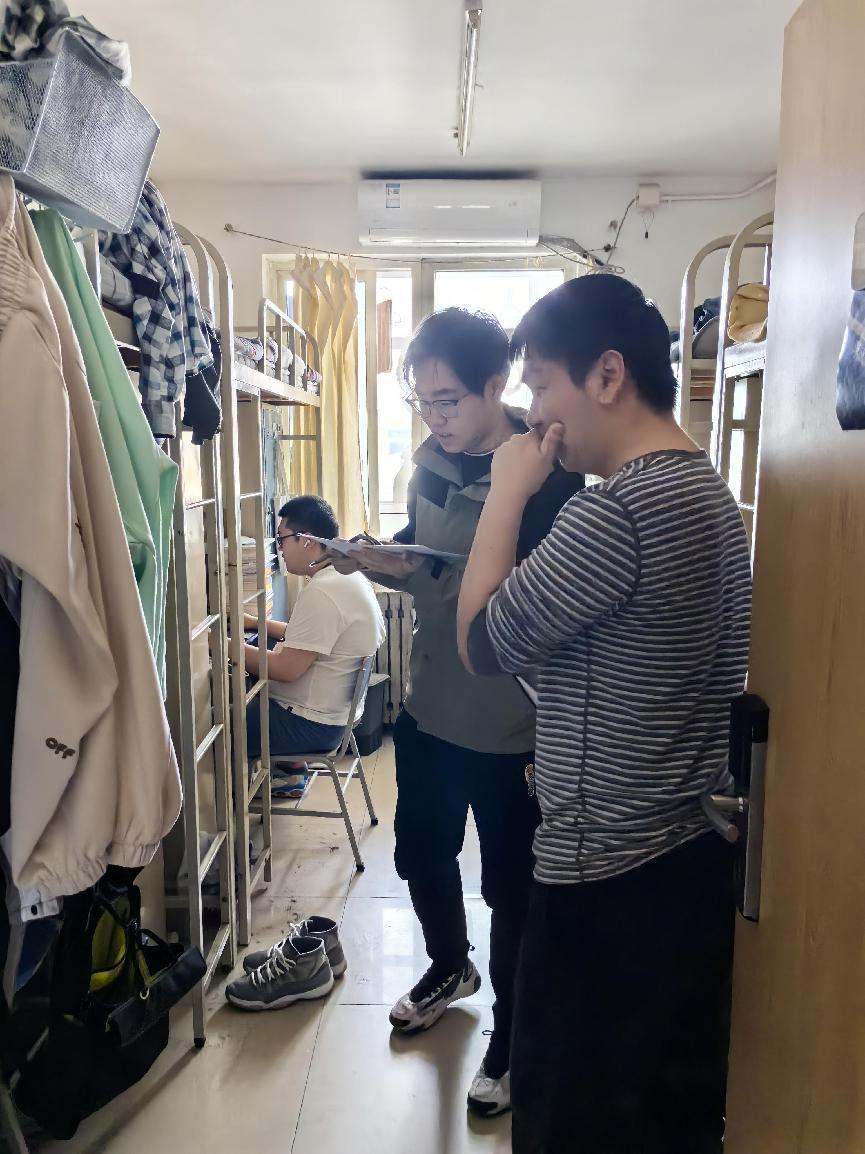 为营造安全温馨的宿舍环境,各年级辅导员带领班委、宿舍长,走访学生宿舍。重点关注宿舍用电安全、宿舍卫生情况,询问同学们作息情况、近期的困难和问题,建议大家做到宿舍常通风、垃圾常清理、桌面常收拾、地面常打扫、安全常铭记,强调人走断电、禁止使用大功率电器。