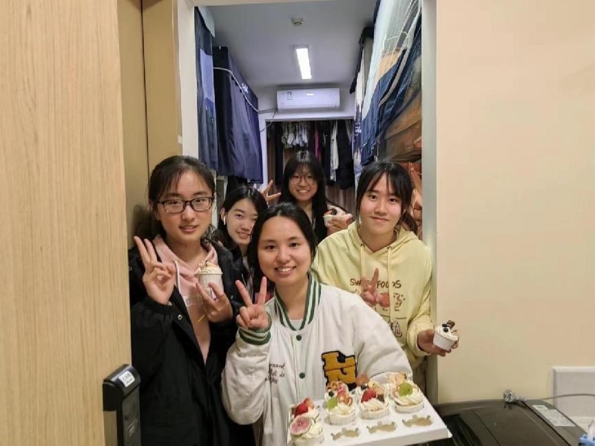 在学习上,我们相互帮助。在面对困难时,我们会一起讨论、思考,并互相鼓励,也注重身体健康和体育锻炼。宿舍有健康固定的熄灯时间;定期大扫除,营造洁净良好的生活环境;我们一起运动,跑步、帕梅拉强身健体,也喜欢一起探索美景,聚餐逛街,创造属于我们的独家记忆。