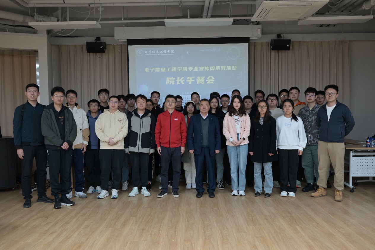 4月10日,电子信息工程学院开展专业宣传院长报告和院长午餐会活动。院长曹先彬,本科教学副院长徐迈,党委副书记姜宇出席,学院专兼职辅导员和600余名信息大类大一学生参加活动。专职辅导员田旺主持会议。