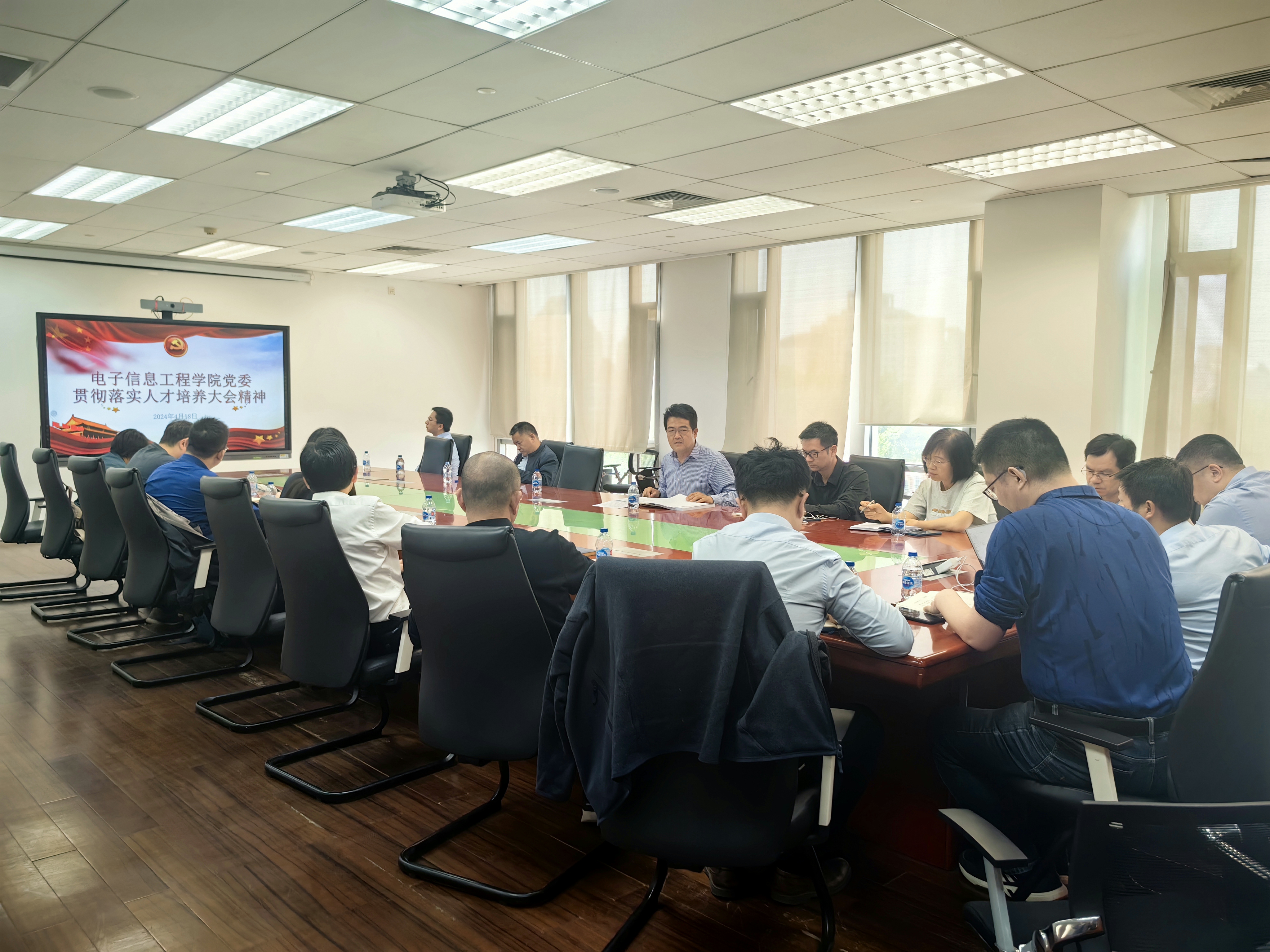 4月18日,电子信息工程学院党委在F706召开党委扩大会议,深入学习贯彻学校人才培养大会精神,研究部署学院人才培养工作。会议由党委书记徐亚军主持,全体党委委员、教师党支部书记参加会议。