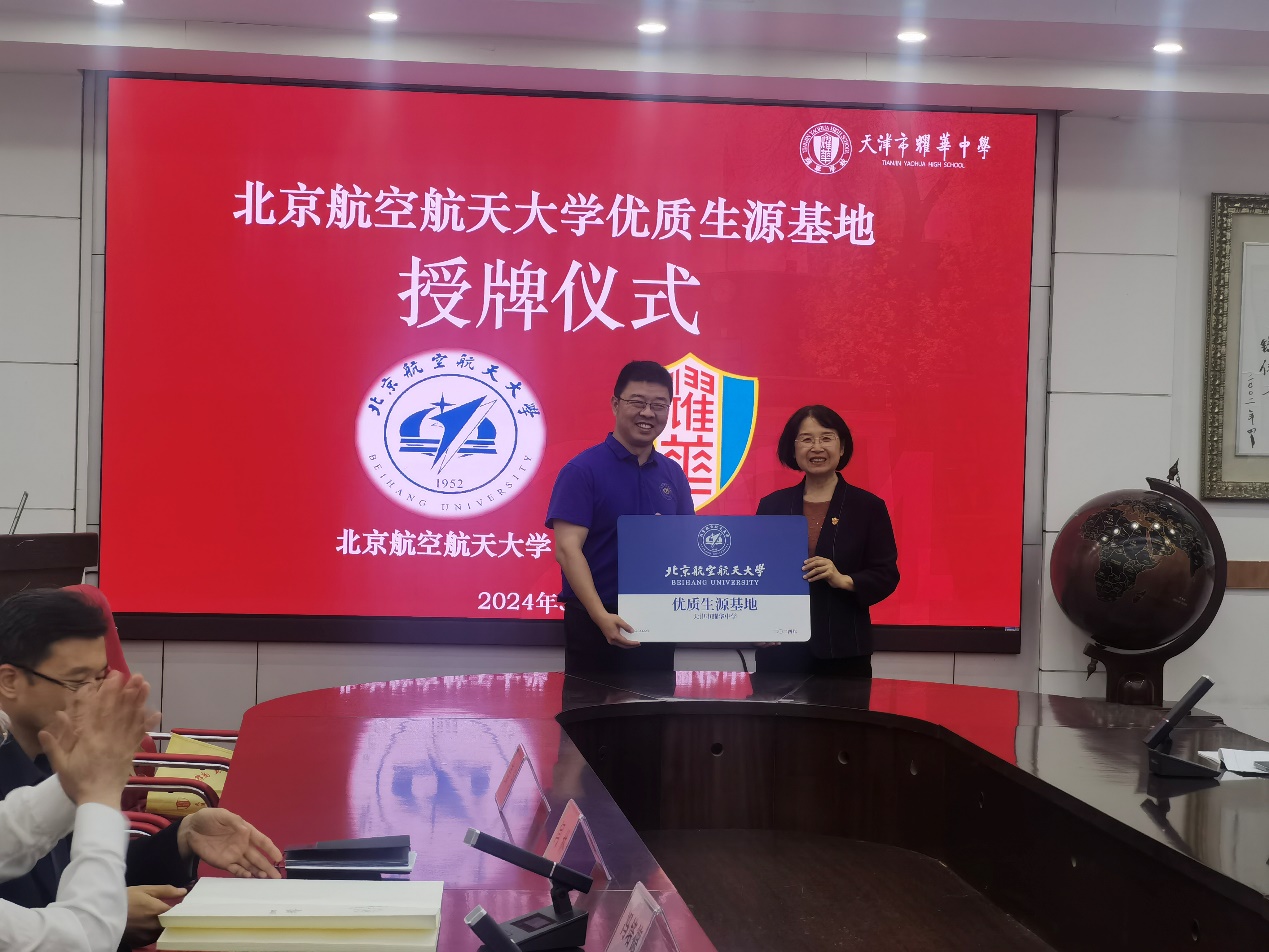 座谈会最后,刘睿主任为耀华中学授予新一期优质生源基地,希望北航和耀华中学能在大中贯通人才培养领域建立更多的合作机制,创新更做的合作模式与方法。