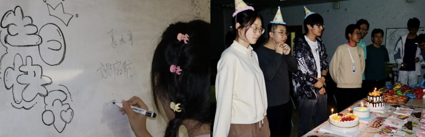 在生日会开始之前,学生会成员们早早来到活动场地,为生日会布置现场。现场忙碌而温馨,五彩缤纷的气球、精美的生日墙、丰盛的零食和甜美的蛋糕,这一切共同勾勒出一幅温馨而美好的画面,让人不由自主地被这份浓浓的喜悦与温情所包围,这是一场关于友情、欢笑与成长的美好庆典。