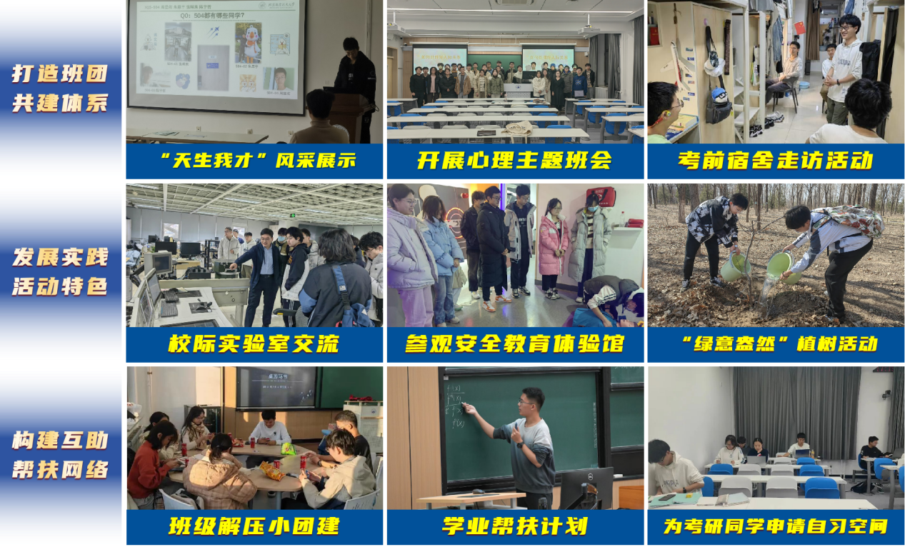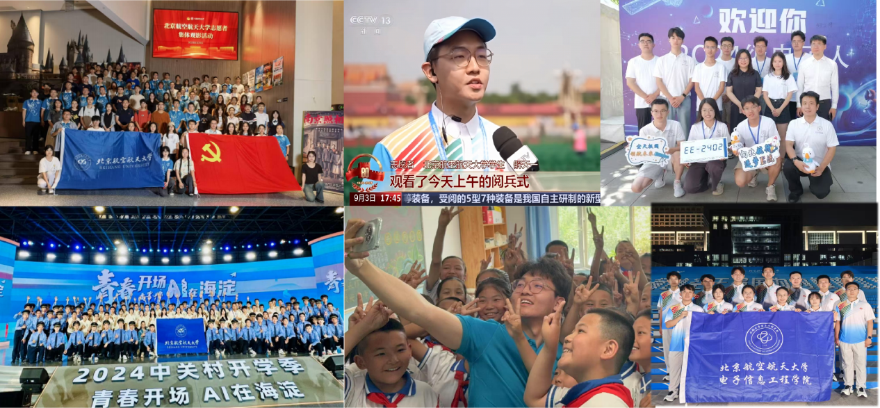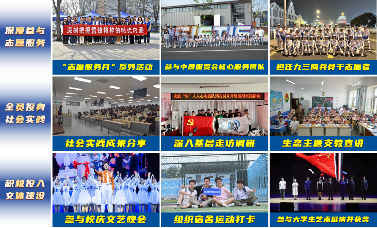 班级集体活动参与200余人次,主办院级及以上活动30余项,获北京市棒垒球比赛季军等体育奖项10项,全国大艺展一等奖等文艺奖项2项。志愿时长累计超6300小时,涵盖九三阅兵、“一带一路”高峰论坛、北航招生等。班级成员努力成为德才兼备、勇于奉献电子人。